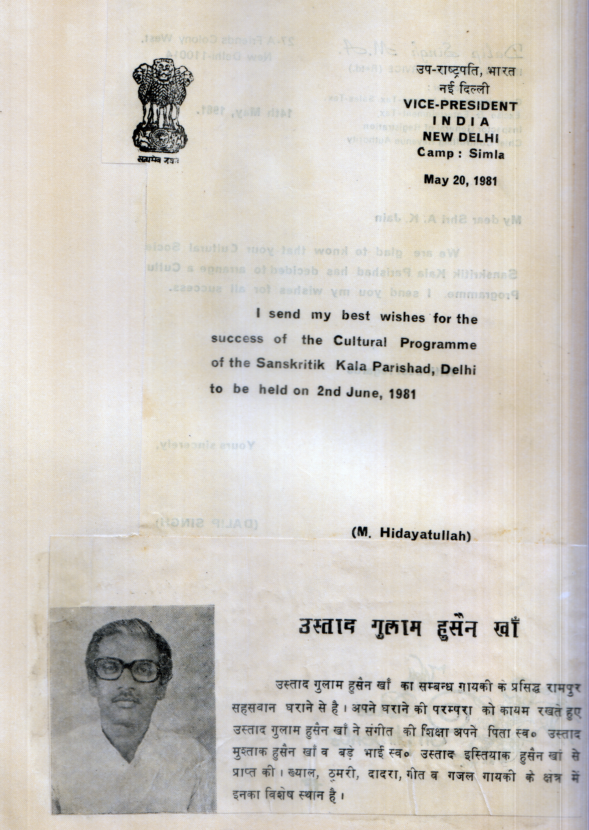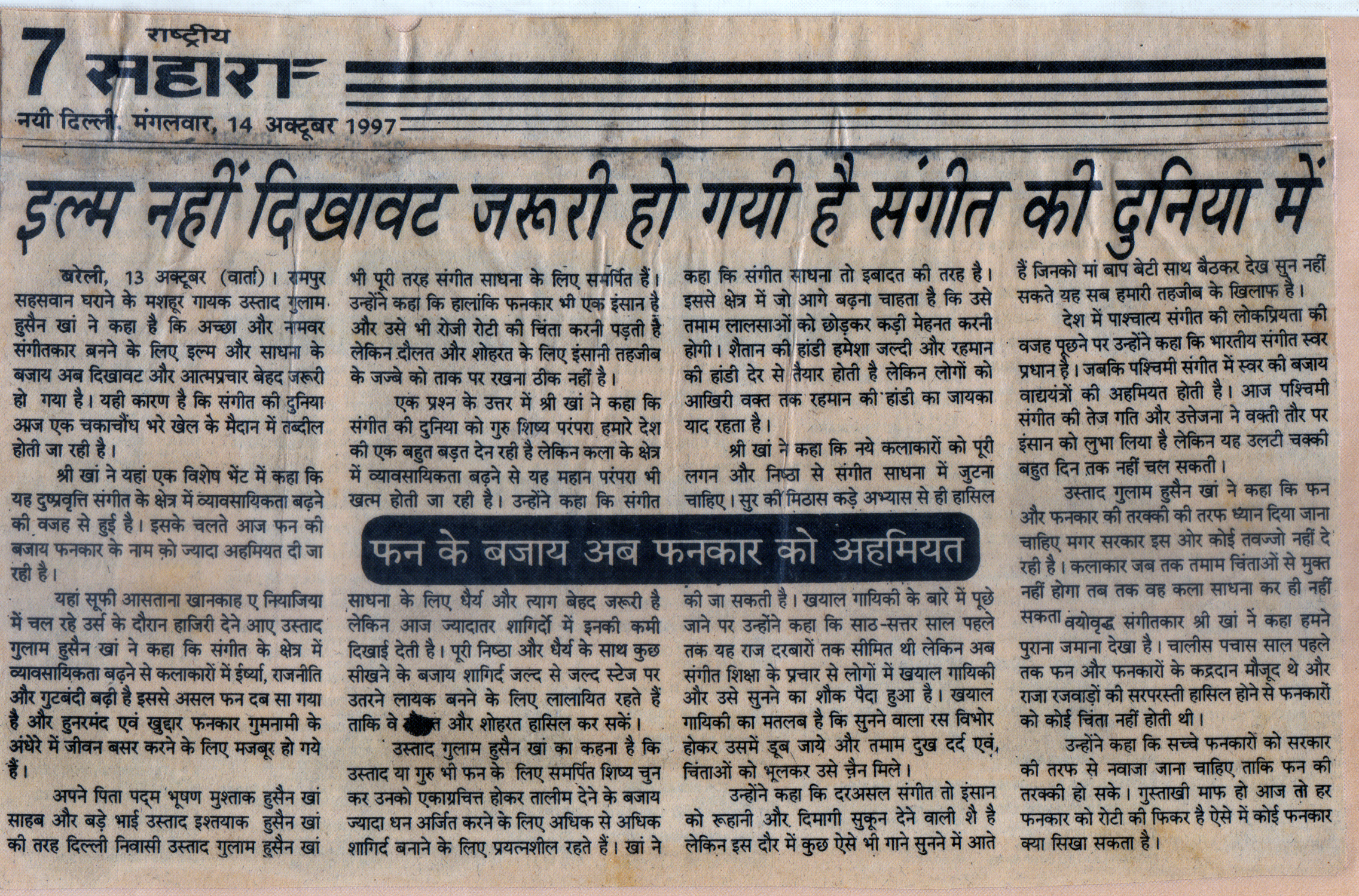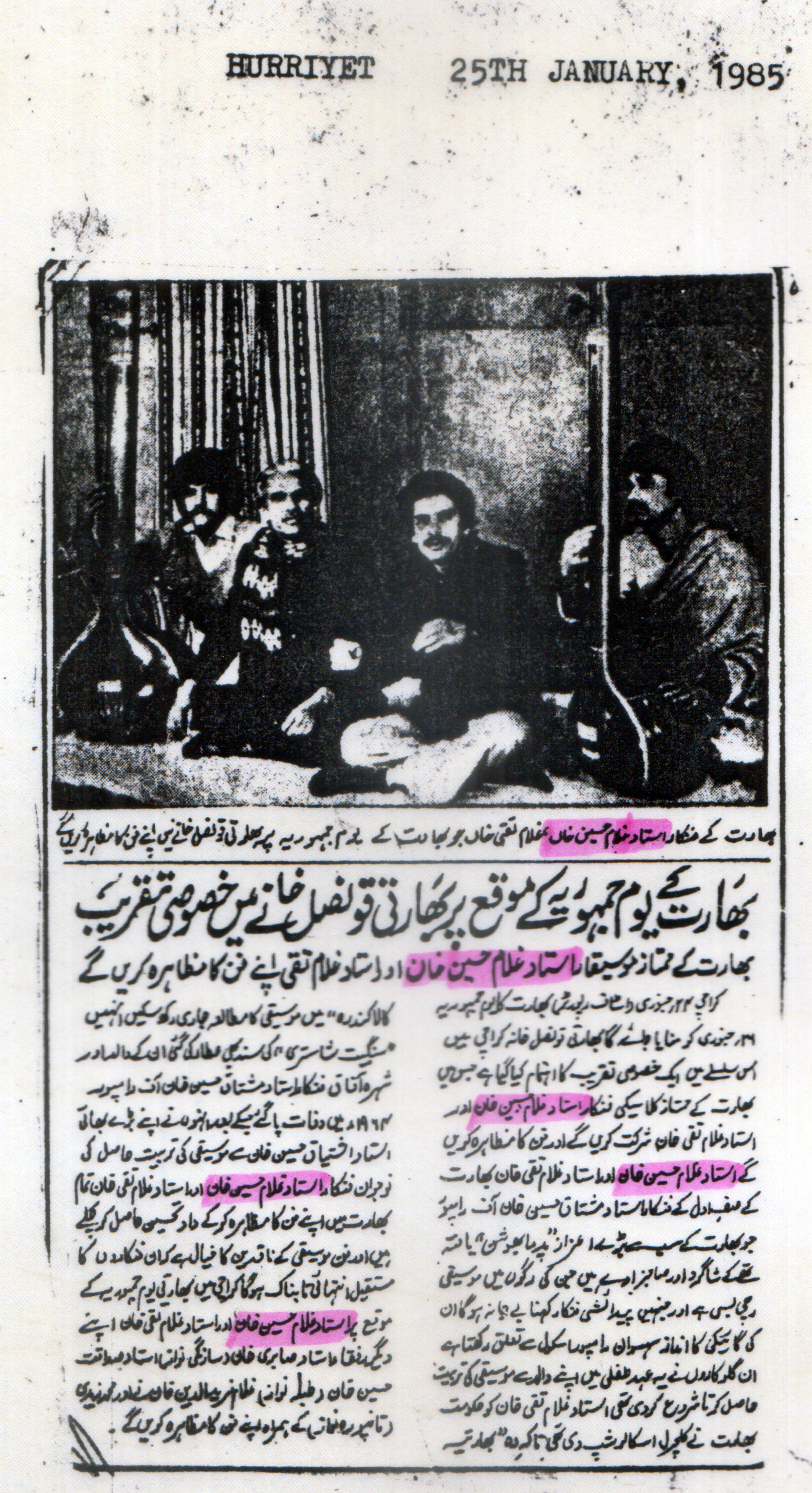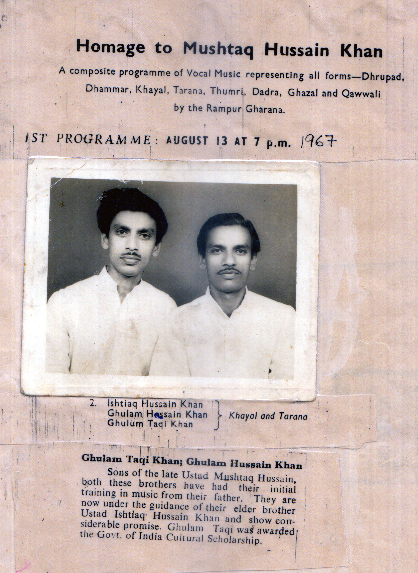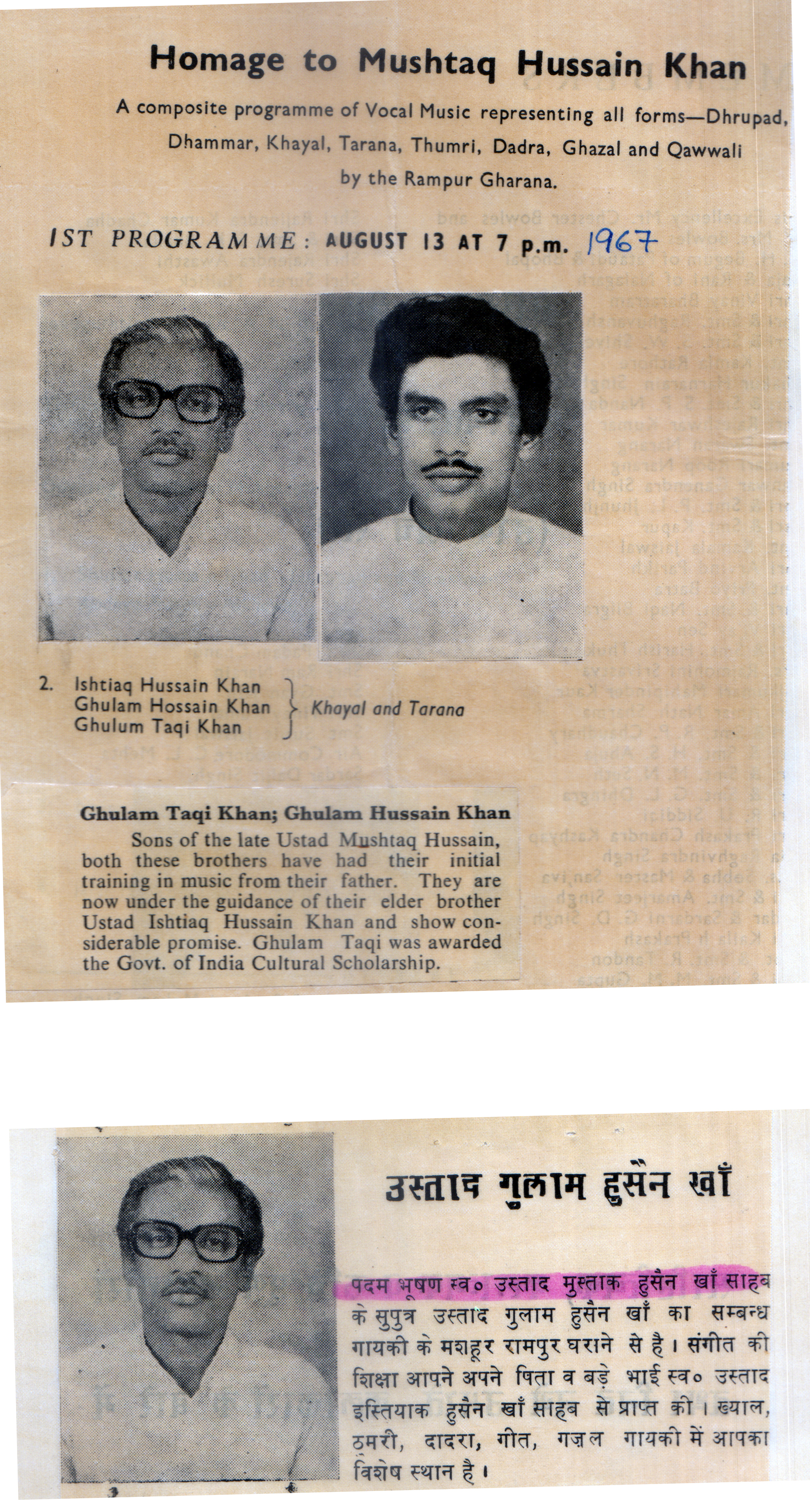 Press Releases of Late Ustad Ghulam Husain Khan
