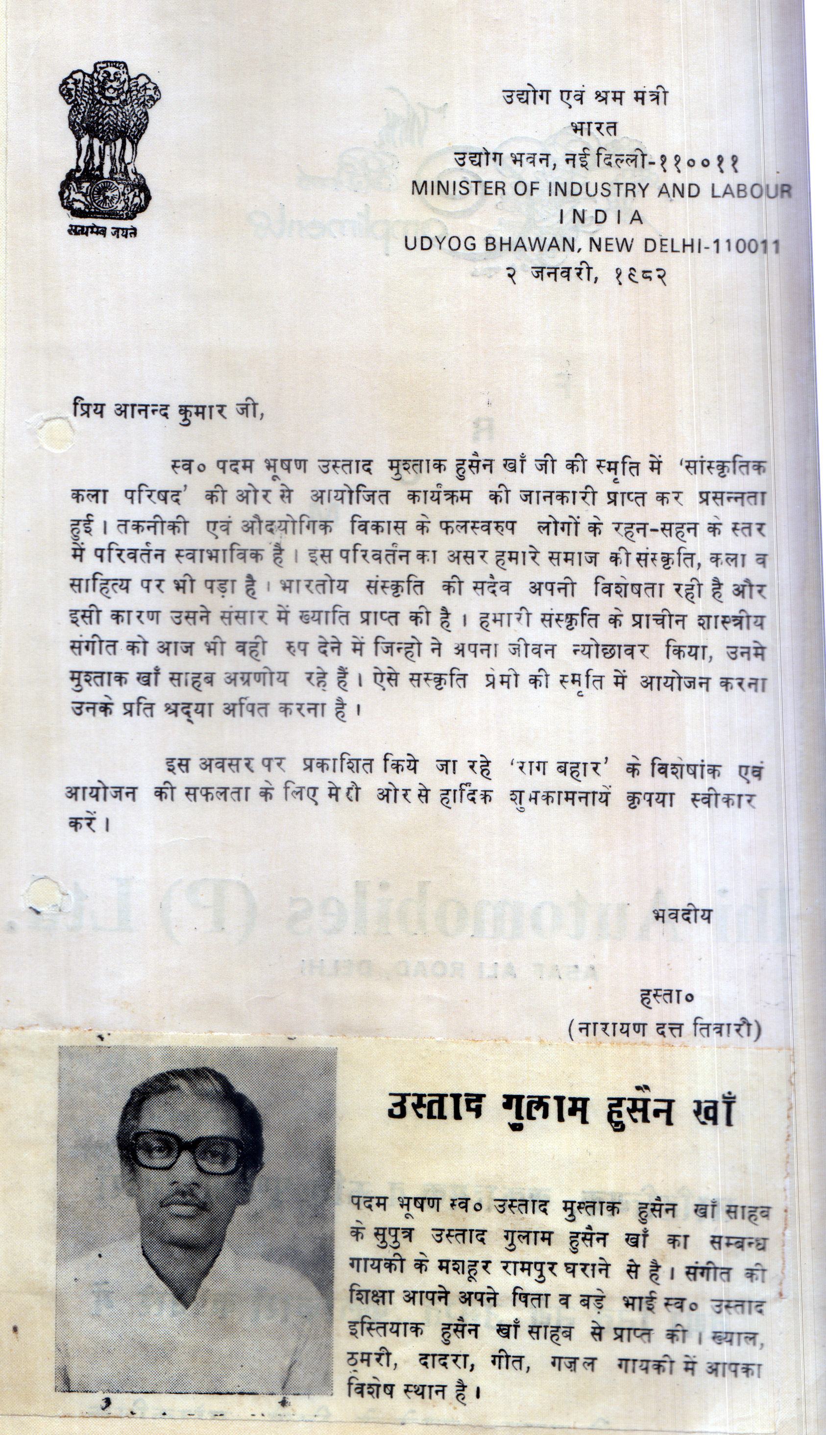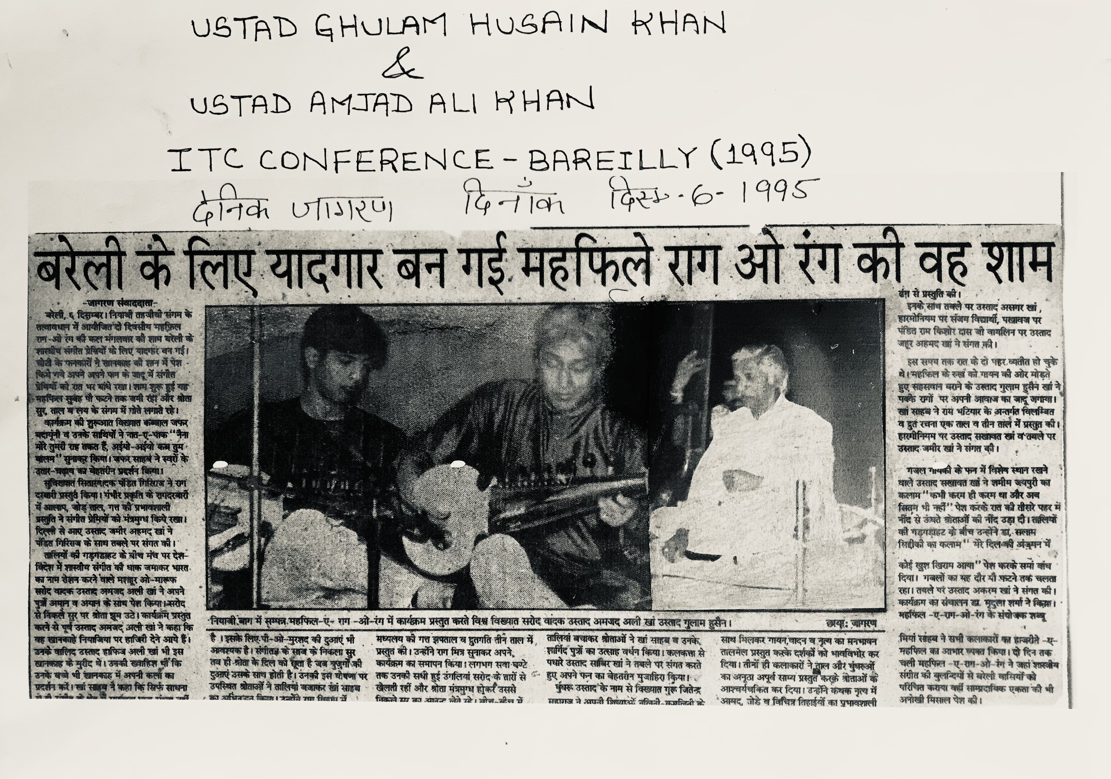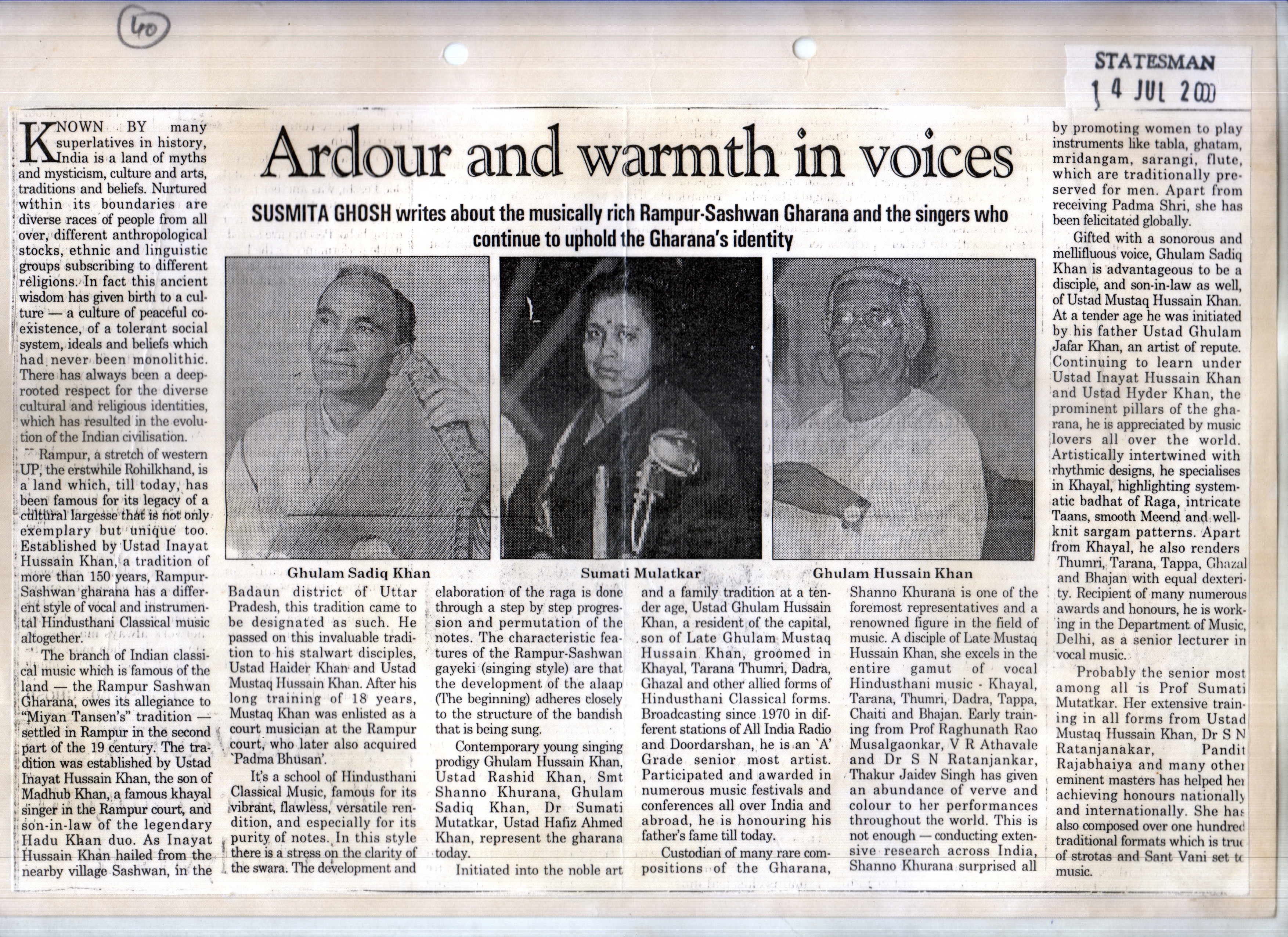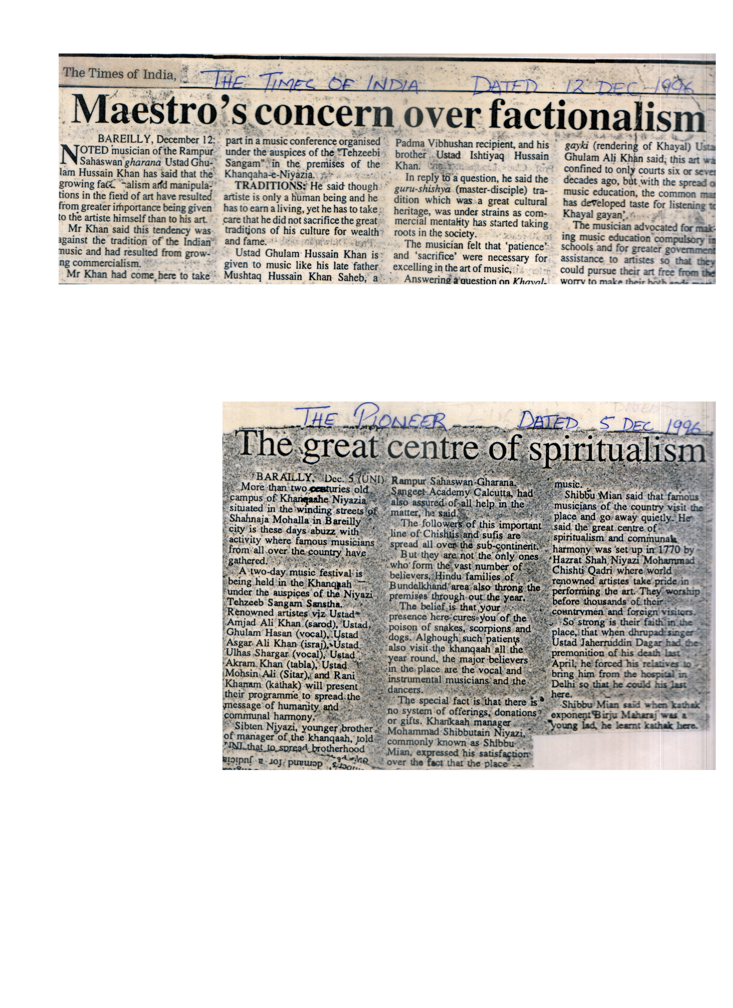 Press Releases of Late Ustad Ghulam Husain Khan