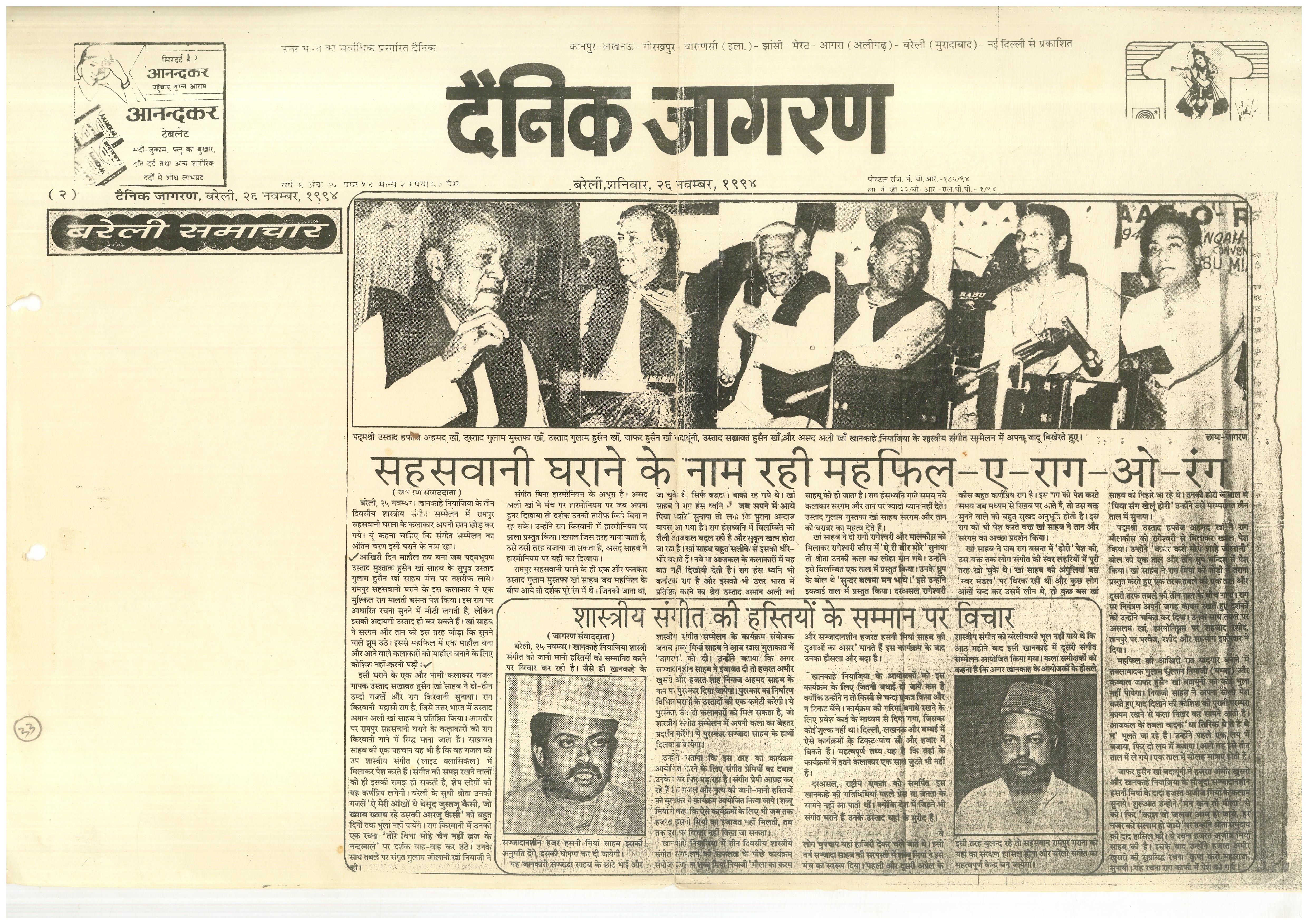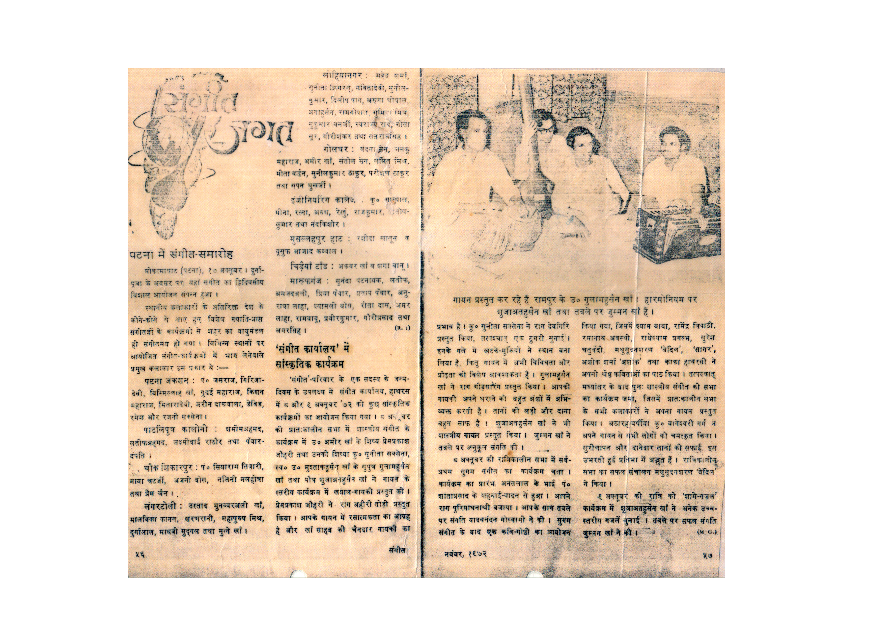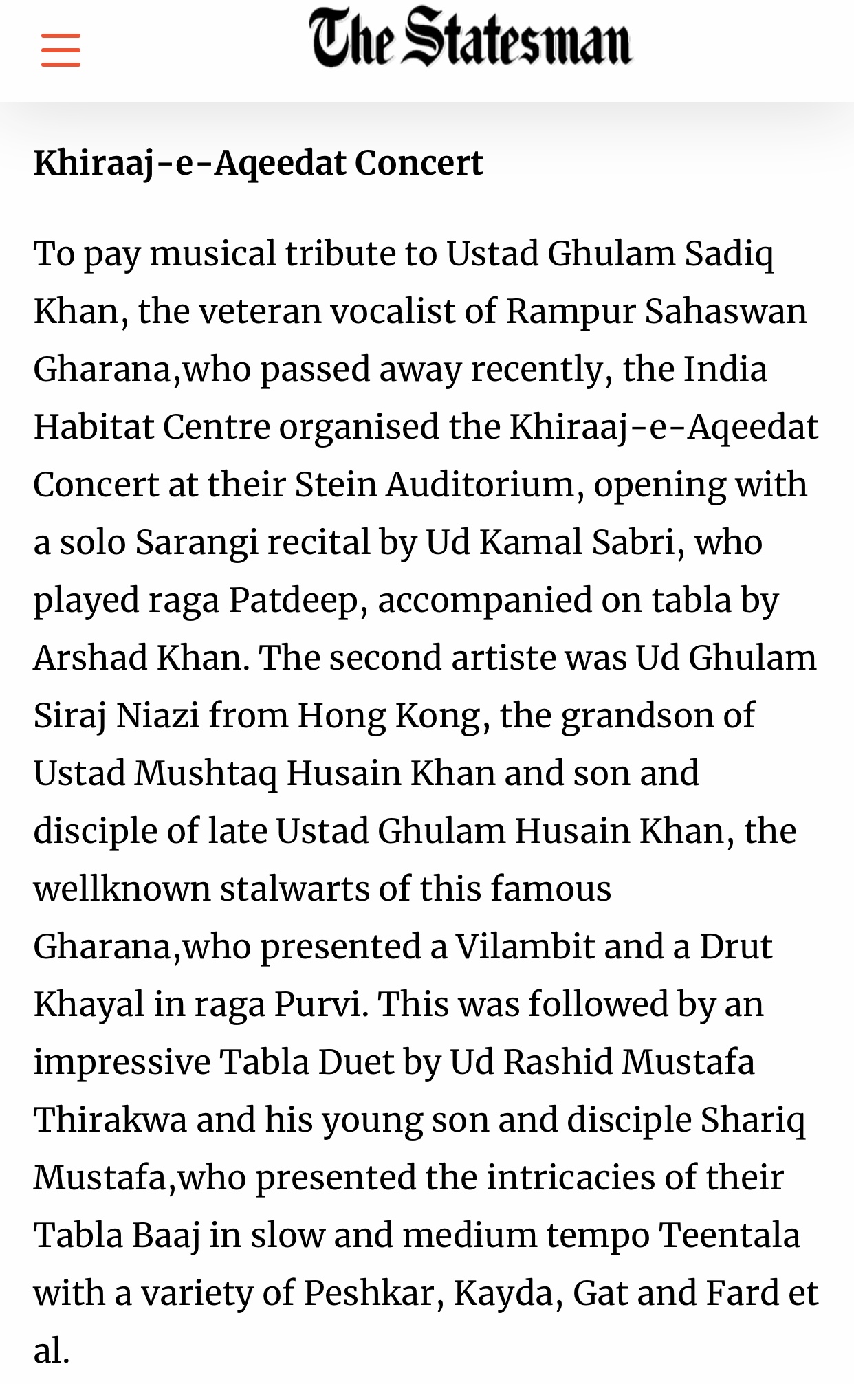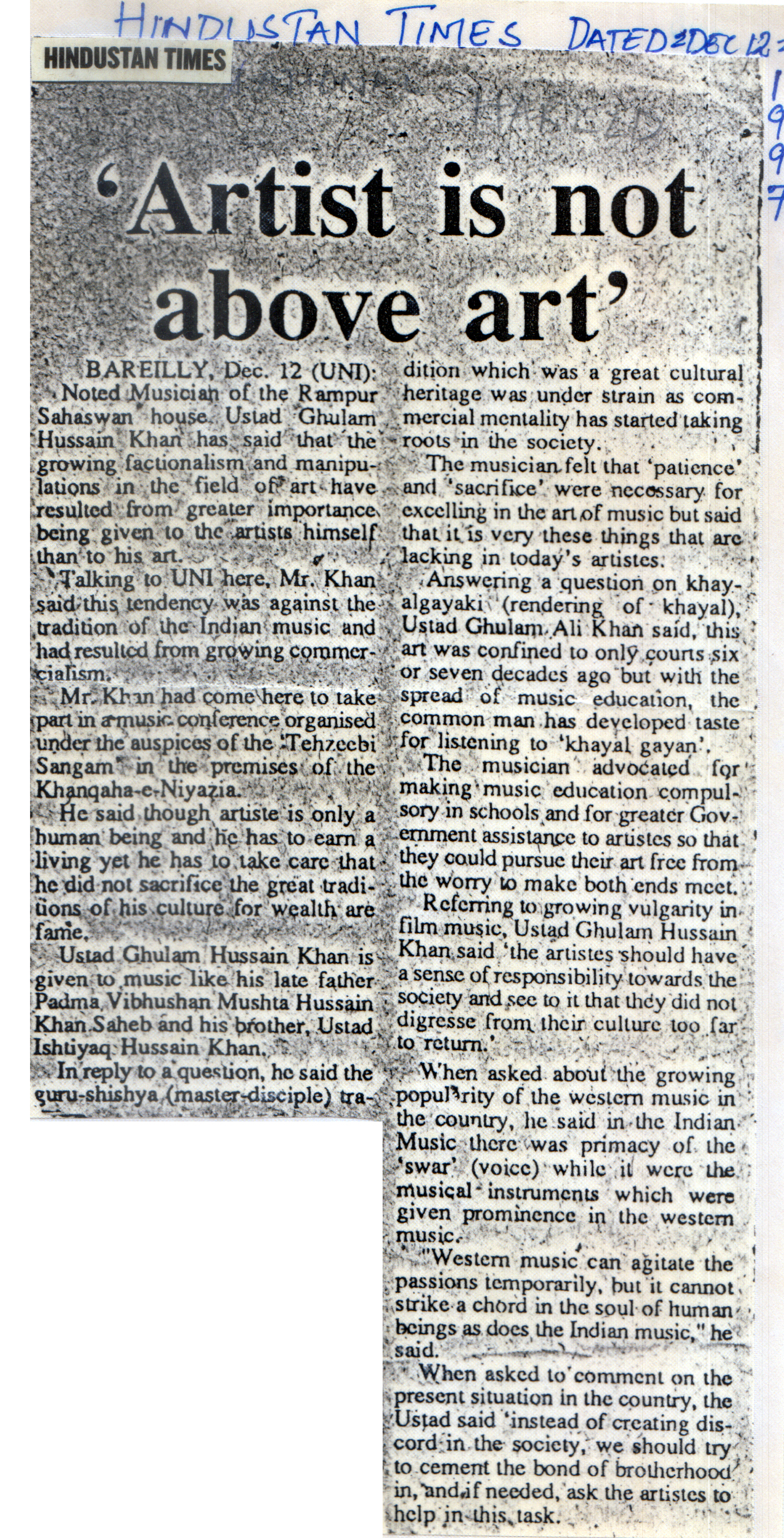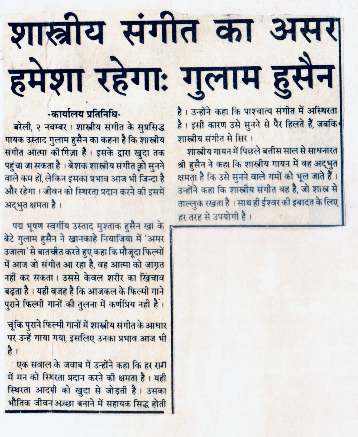Press Releases of Late Ustad Ghulam Husain Khan