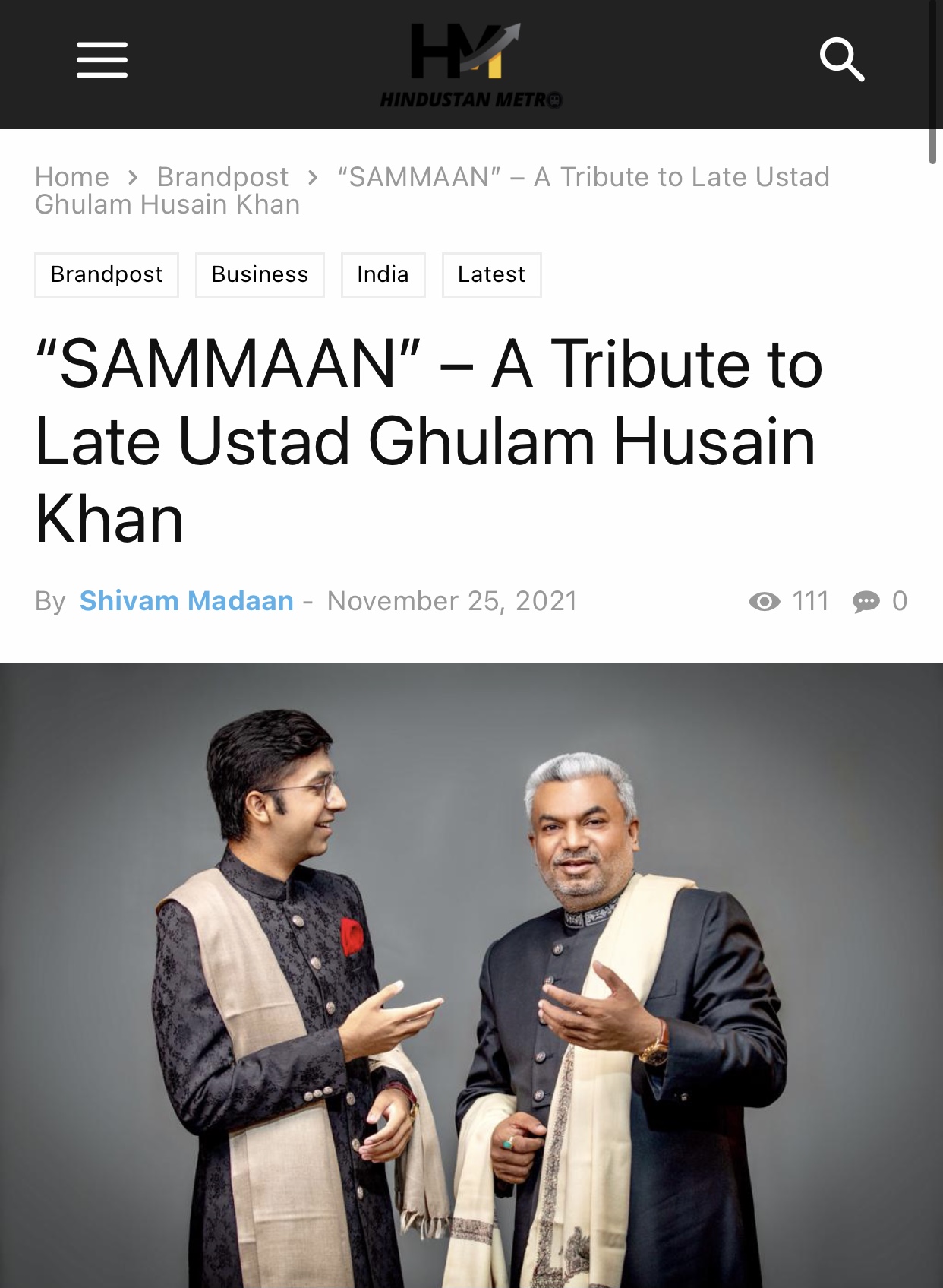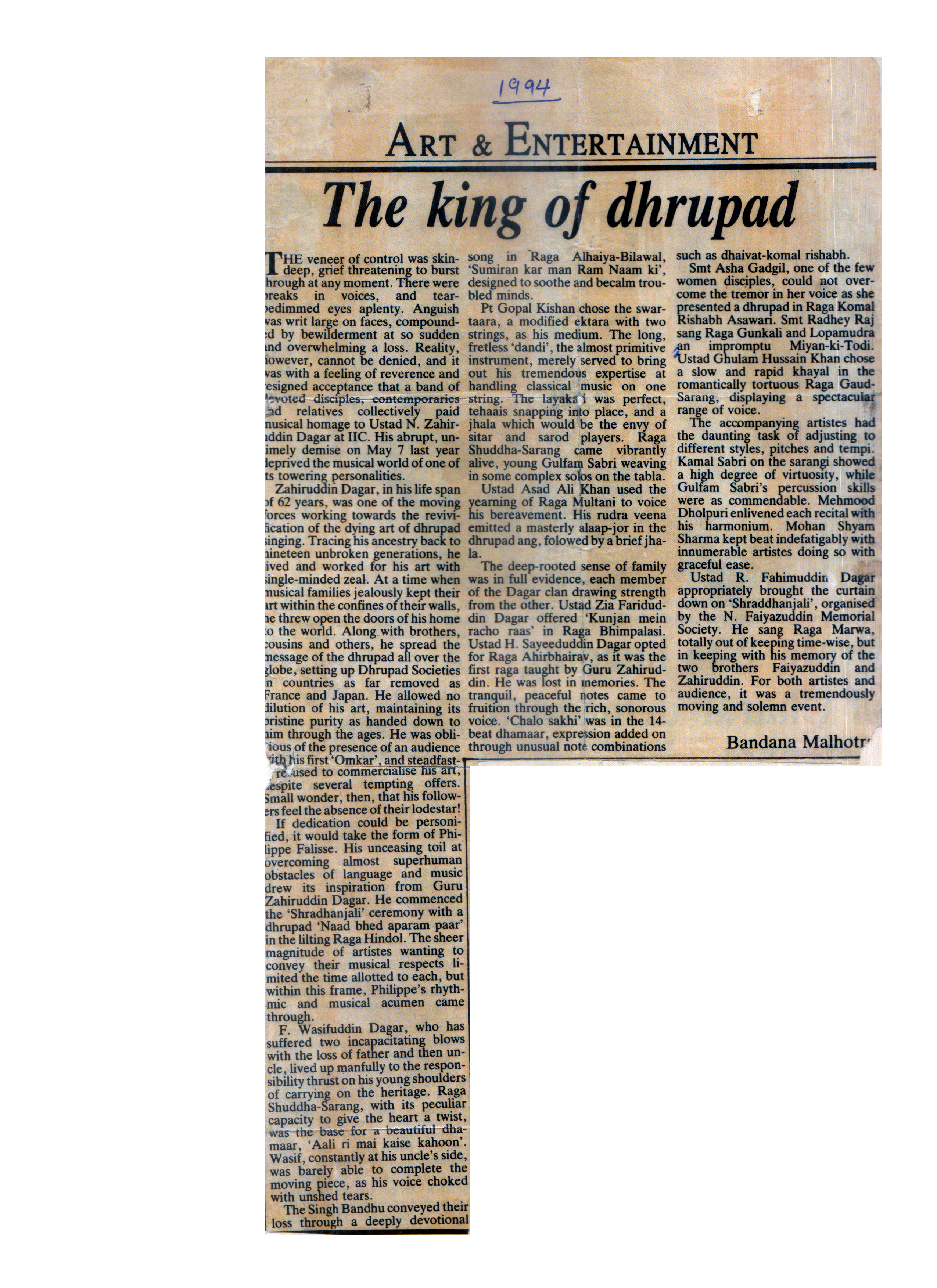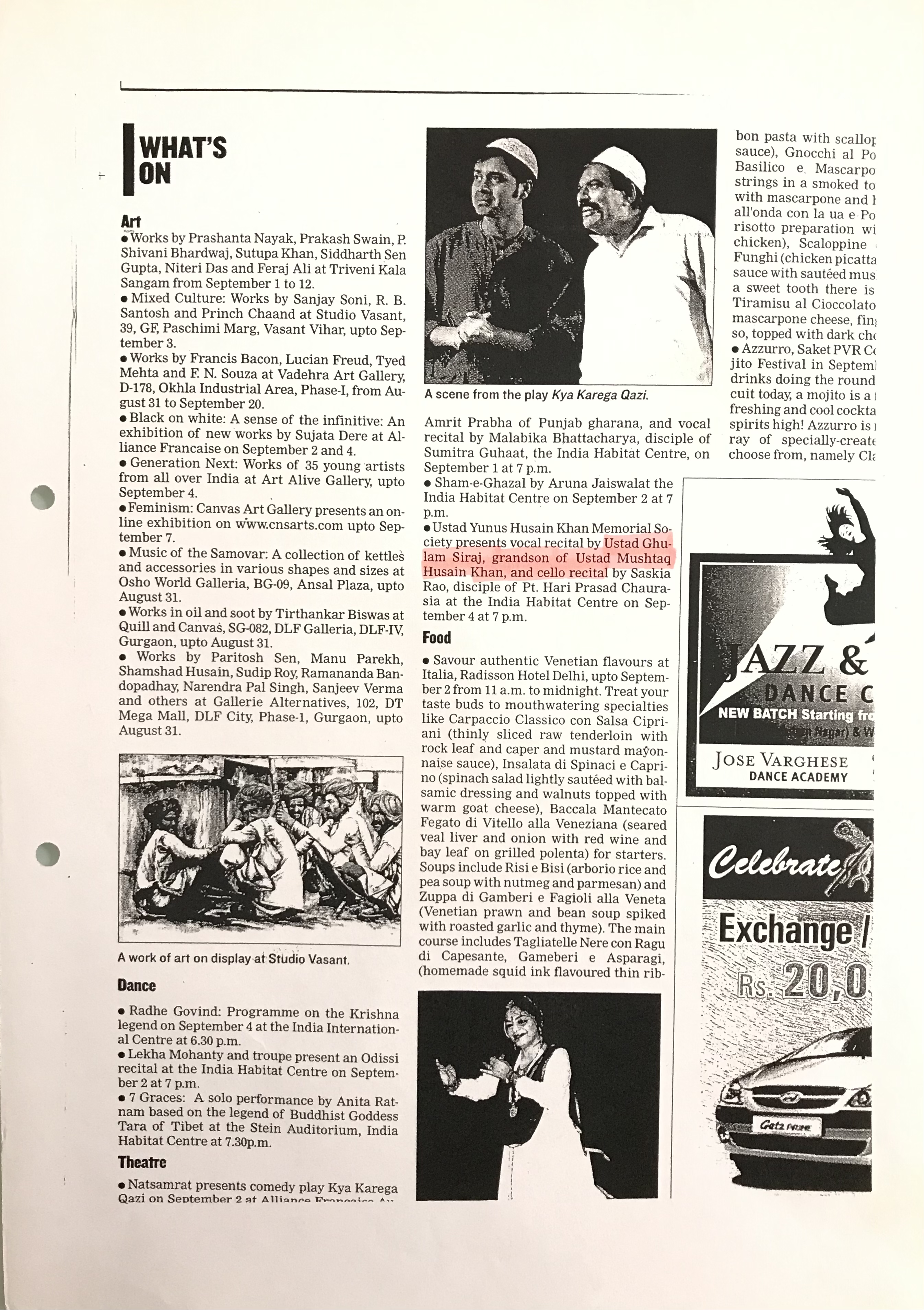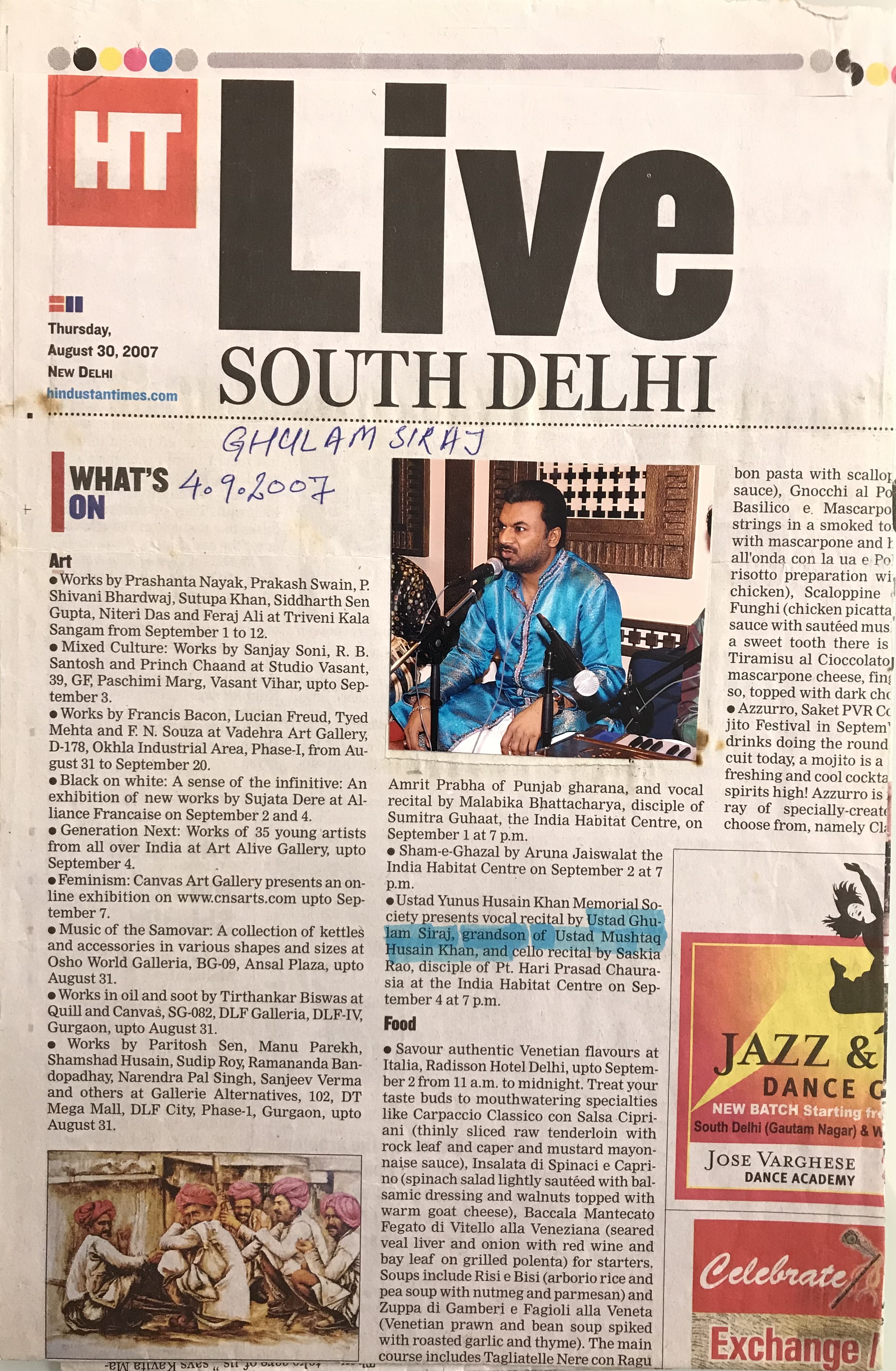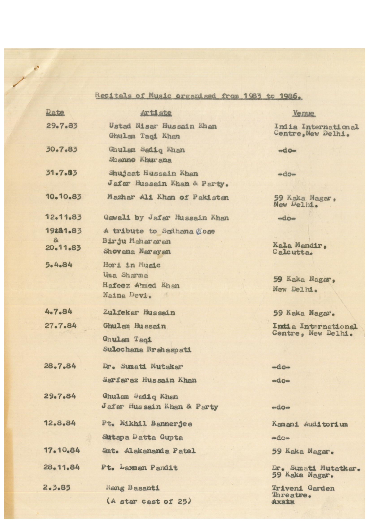 Press Releases of Late Ustad Ghulam Husain Khan