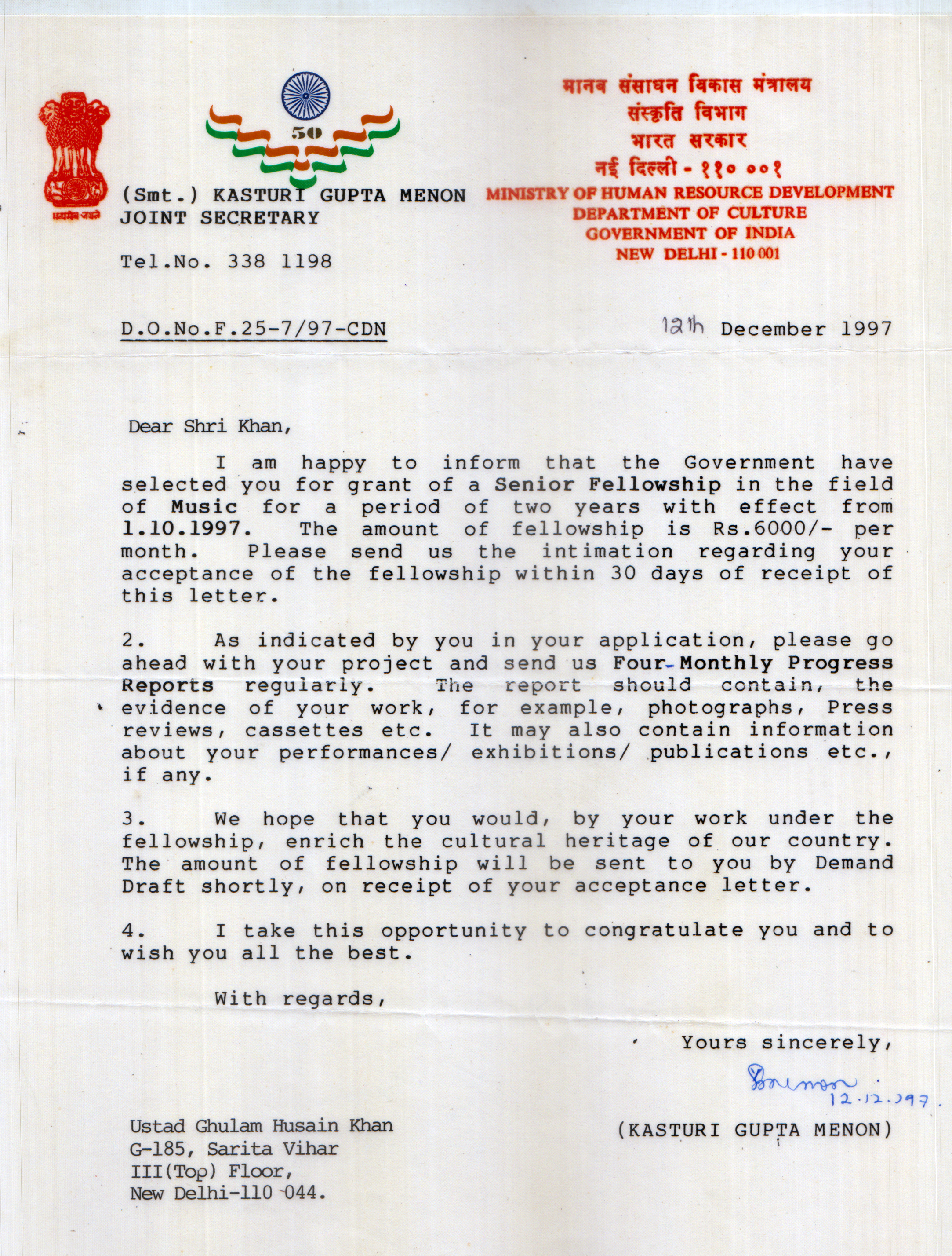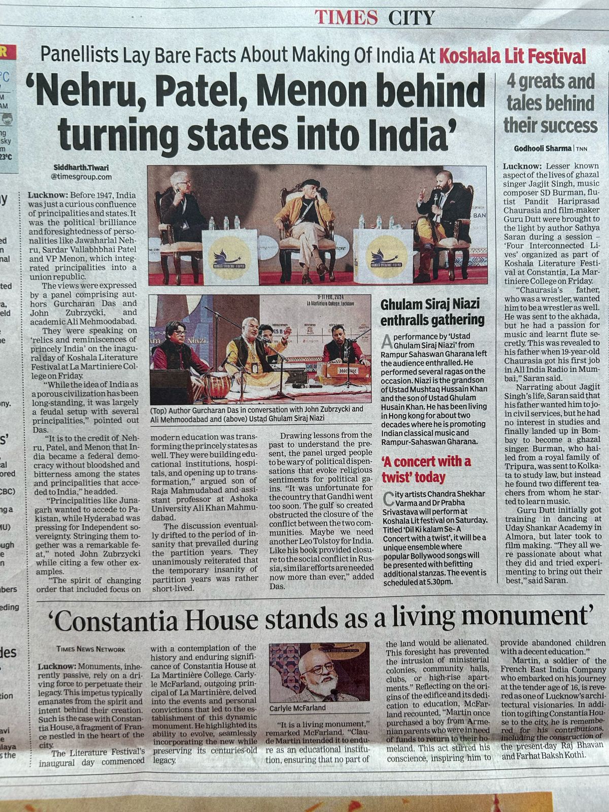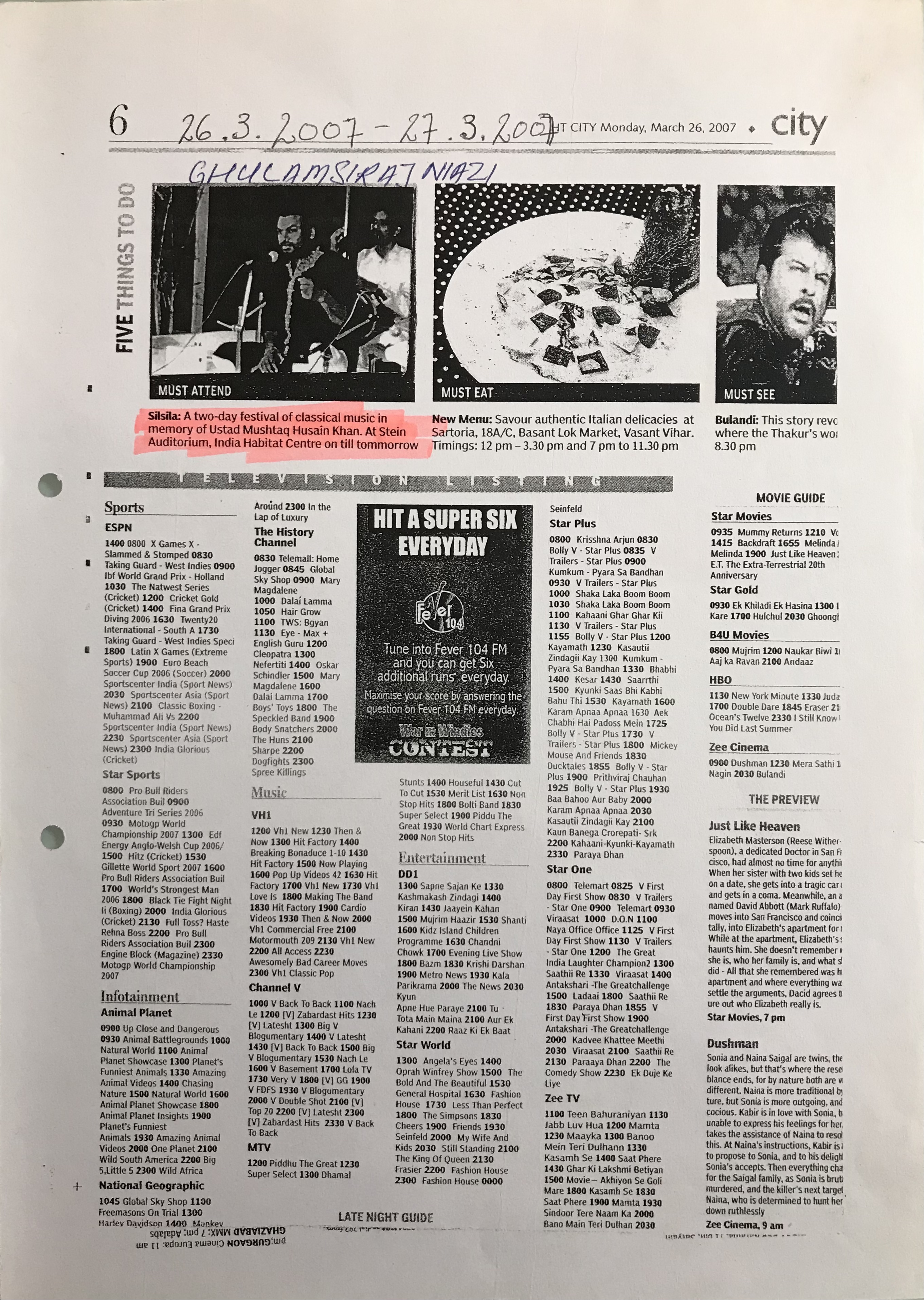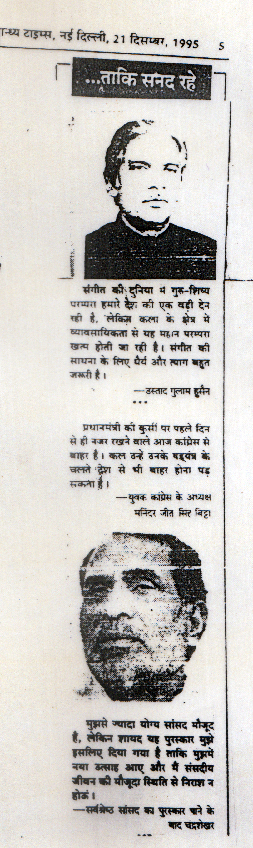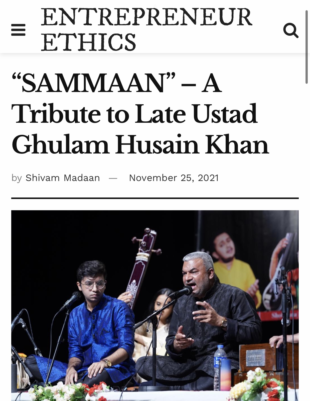 Press Releases of Late Ustad Ghulam Husain Khan