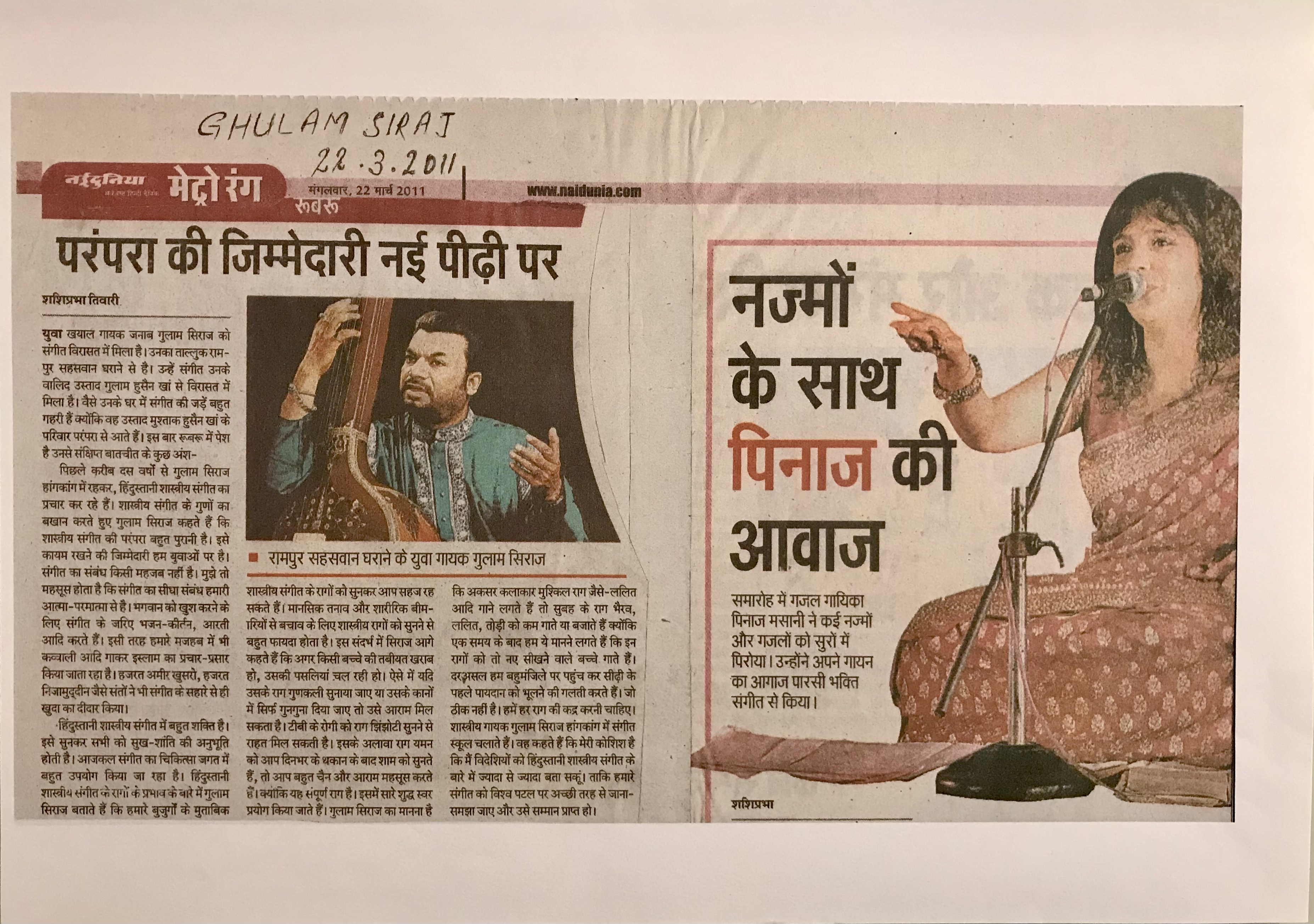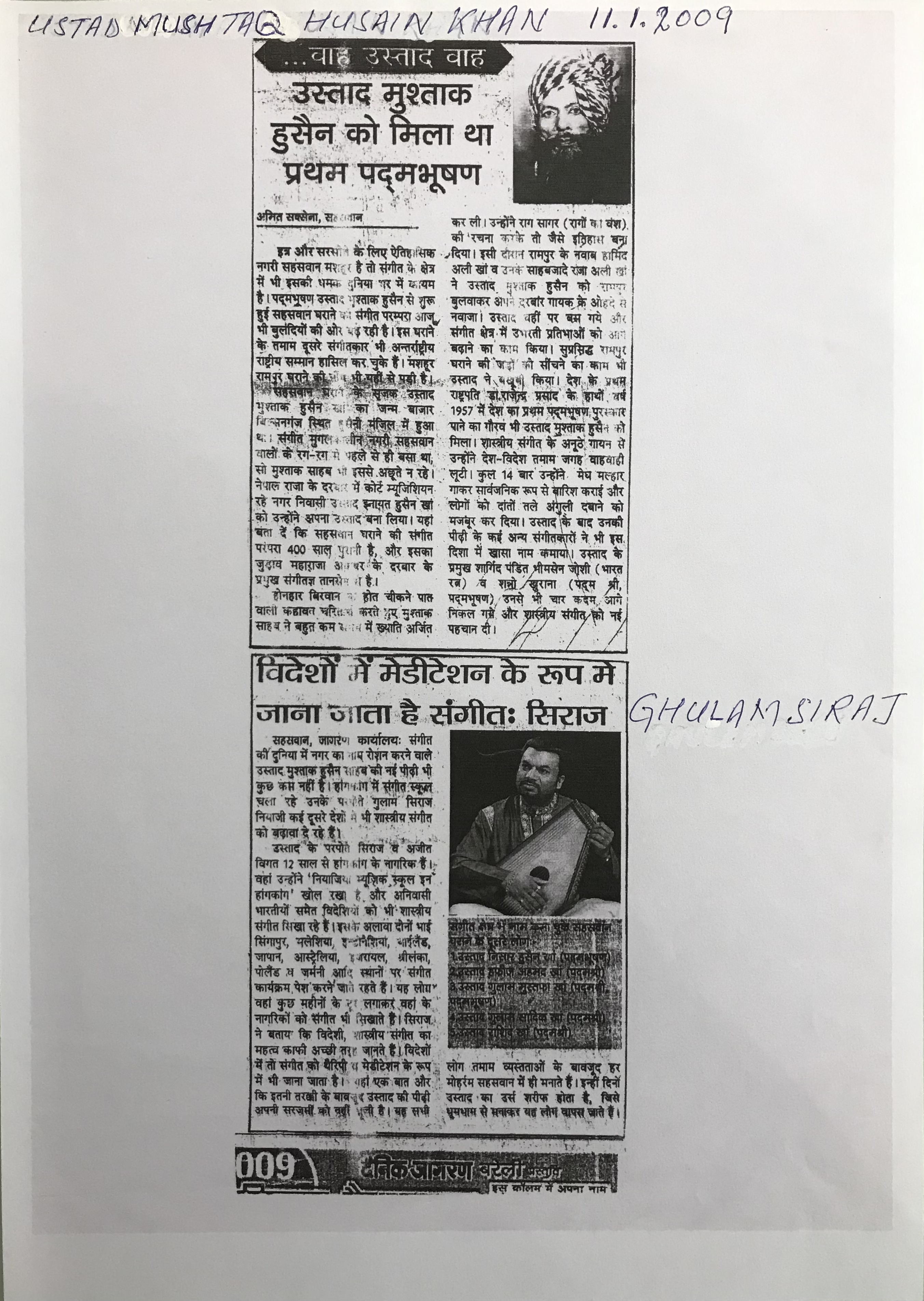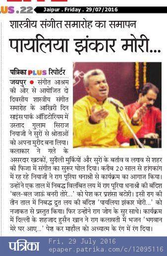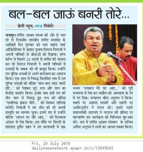 Press Releases of Ustad Ghulam Siraj Niazi