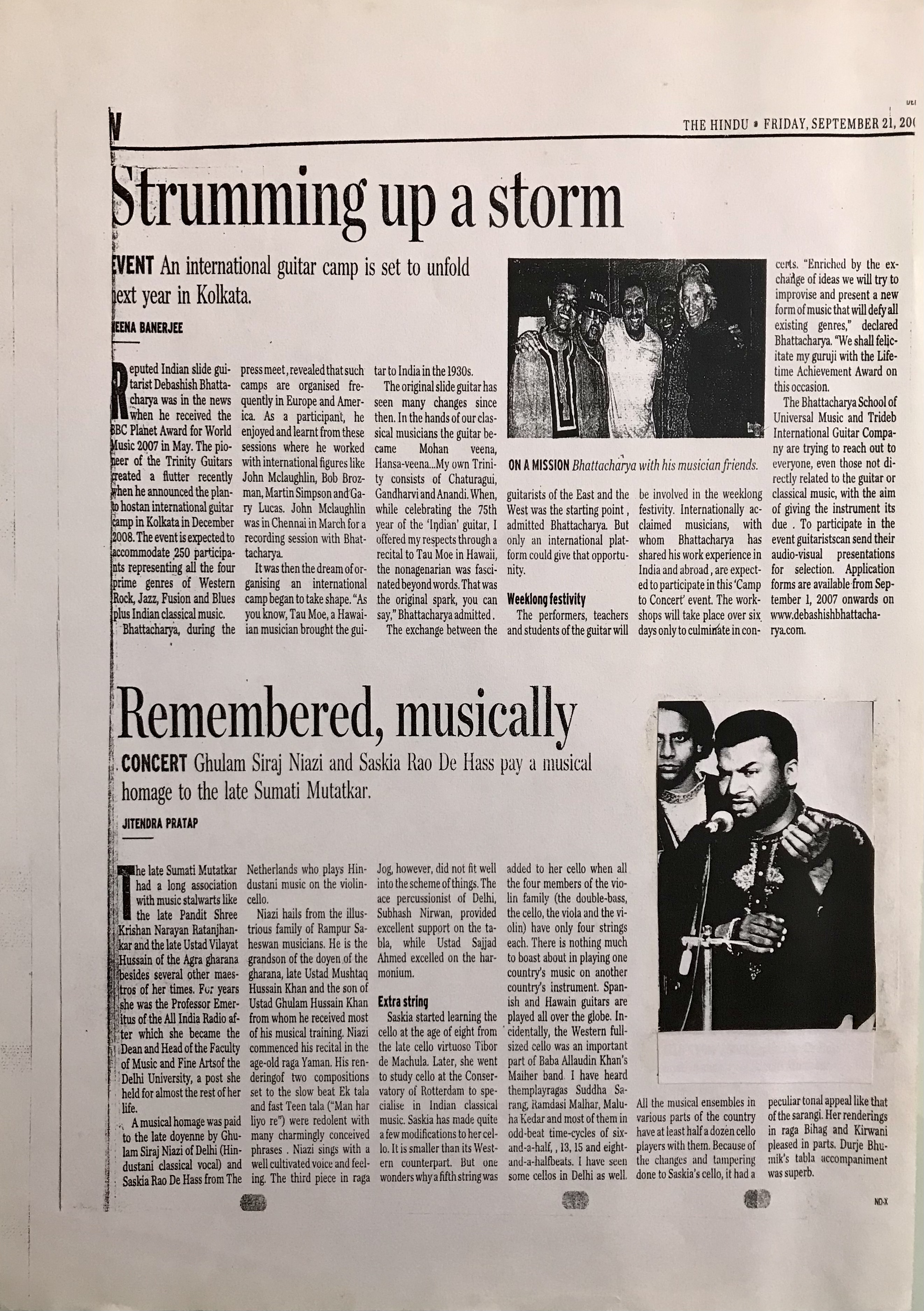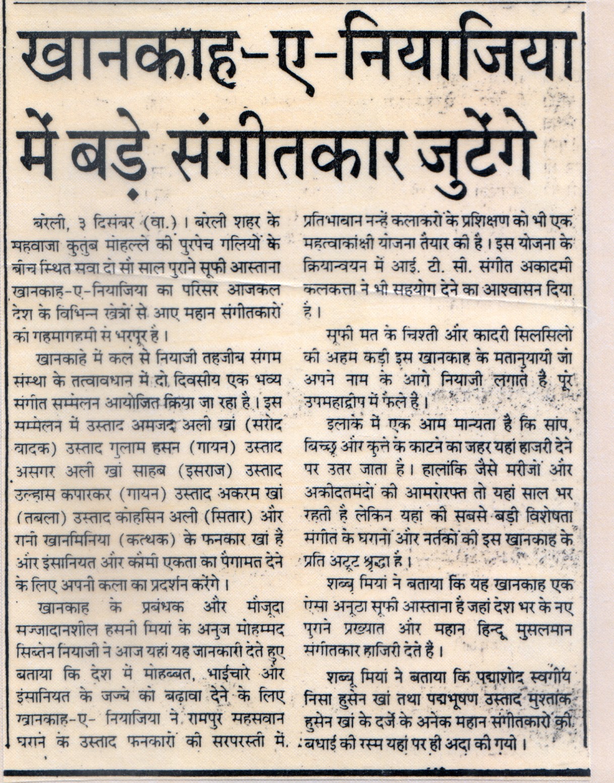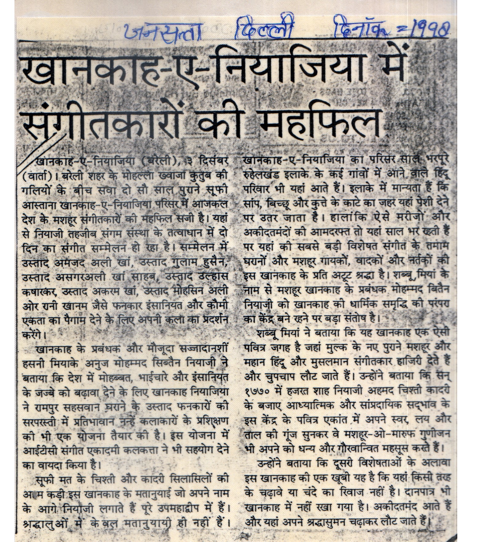 Press Releases of Ustad Ghulam Siraj Niazi